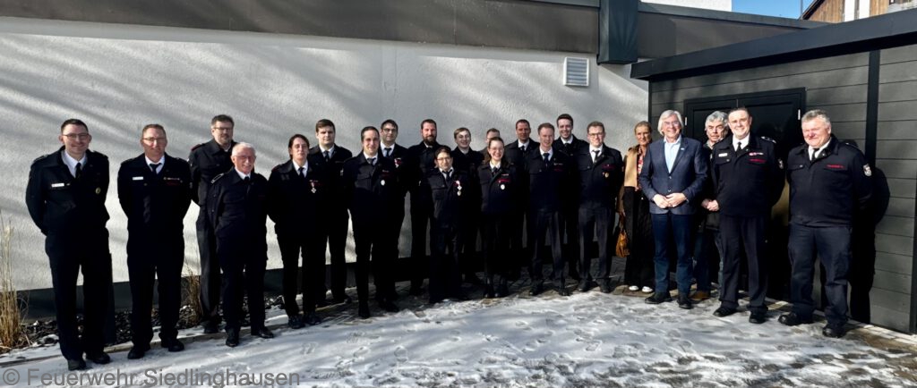 Lingenauber konnte Einheitsführer Brandoberinspektor Thomas Schmidt zahlreiche Anwesende begrüßen, darunter den Stv. Bürgermeister der Stadt Winterberg, Joachim Reuter, von den örtlichen Mitgliedern des Stadtrates Sandra Biene (CDU), sowie Sebastian Vielhaber und Heiner Kräling (Freie Wähler), eine Abordnung der St. Johannes Schützenbruderschaft sowie die Vorsitzenden der Negertalmusikanten. Ebenfalls hieß er Pastor Michael Danne sowie Diakon Michael Wiedenbeck herzlich willkommen. Er begrüßte ebenso den Bezirksbrandmeister Uwe Wiedenbeck, den Stv. Leiter der Feuerwehr Winterberg, Klaus Greve sowie die Einheitsführung der Feuerwehr Altenfeld und Silbach.